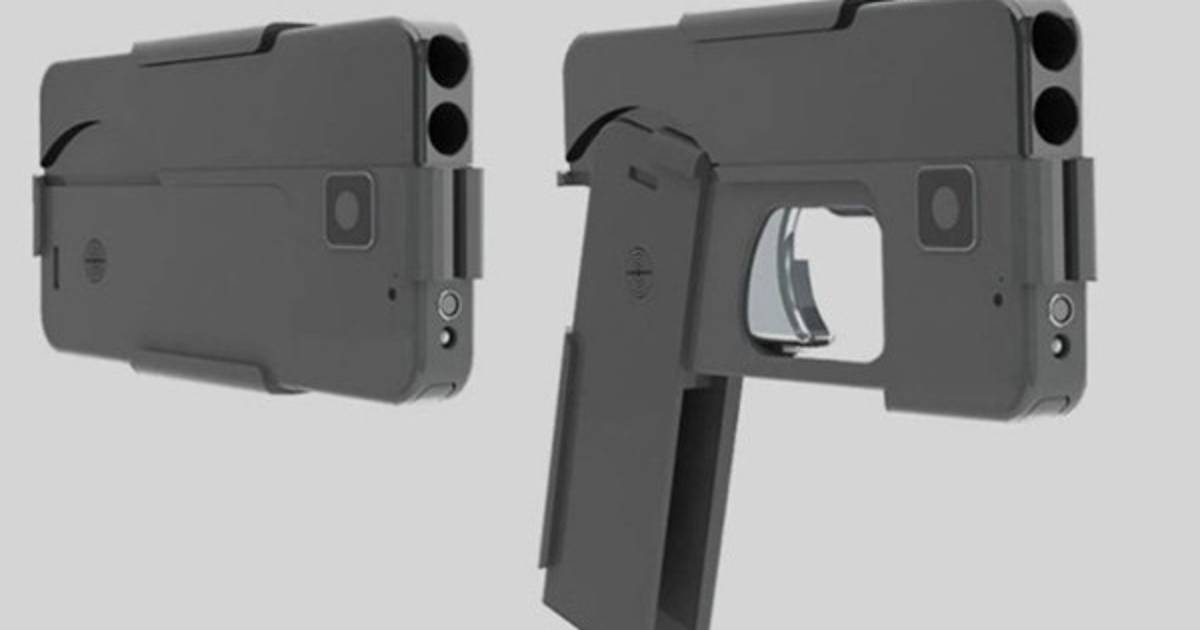 esta pistola de doble cañón parece un 'smartphone'. Sin embargo, con un simple movimiento de la mano se convierte en un arma real.