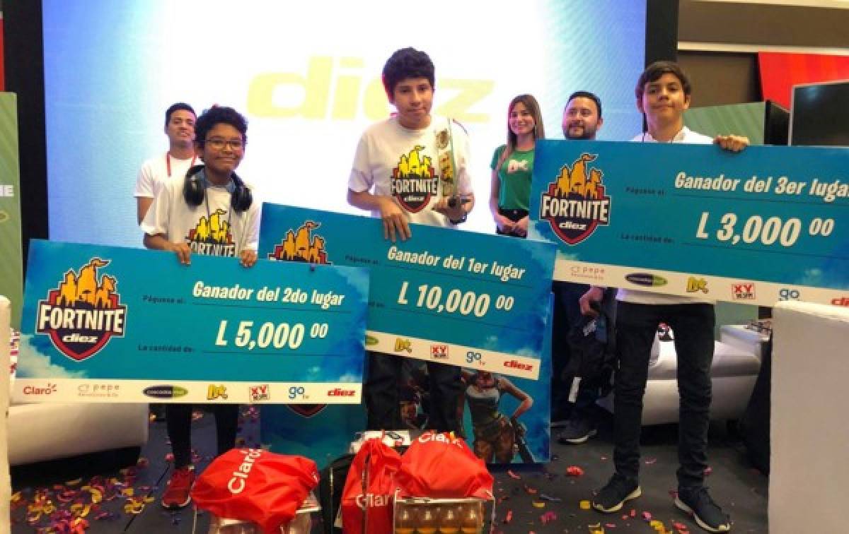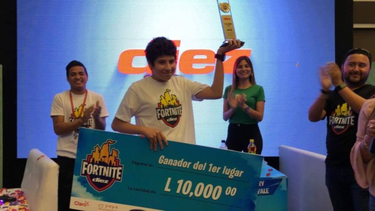 El joven José Flores de 14 años se llevó el primer lugar del torneo Fortnite Diez que se desarrolló en Cascadas Mall en Tegucigalpa luego de eliminase con otros 127 muchachos.