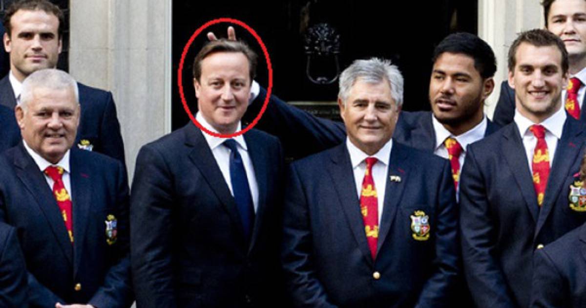 Un jugador de rugby del equipo de los Leones se disculpó con el primer ministro británico, David Cameron, por ponerle 'cuernos' (también llamados 'cachitos') cuando estaban siendo fotografiados durante una visita a la famosa calle londinense, Downing Street, lugar en donde viven los superiores ministros británicos.