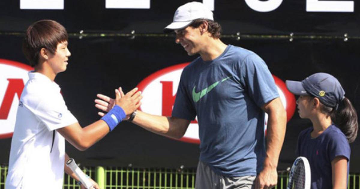 Nadal y Lee intercambiaron algunos golpes con la raqueta y el español elogió la agilidad y la rapidez de los movimientos en la cancha del joven surcoreano, al que animó a seguir trabajando duro y disfrutar de este deporte.