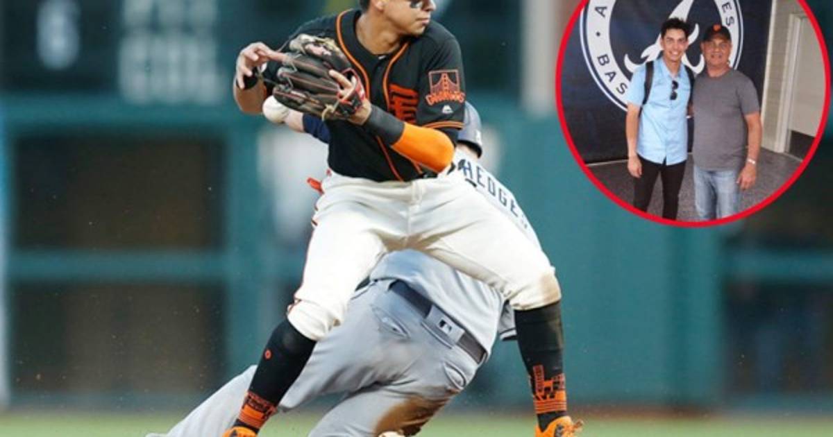 Mauricio Dubón junto a su padre que lo fue a ver jugar en Atlanta frente a los Bravos. Foto especial