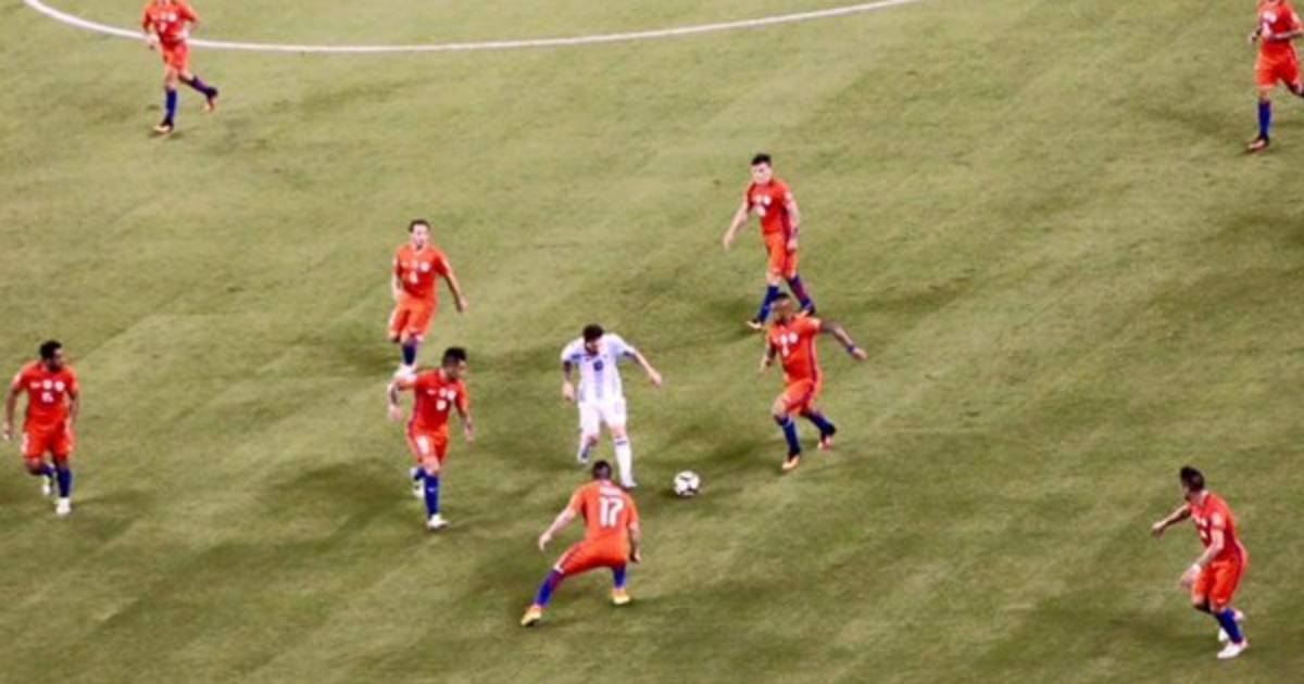 Muchos aseguran que en la final contra Chile, 'La Pulga' estuvo solo enfrentando a cualquier número de rivales y esto lo refuerza una imagen que se está viralizando en las redes sociales donde se puede ver a Messi enfrentando ¡A 9 chilenos!