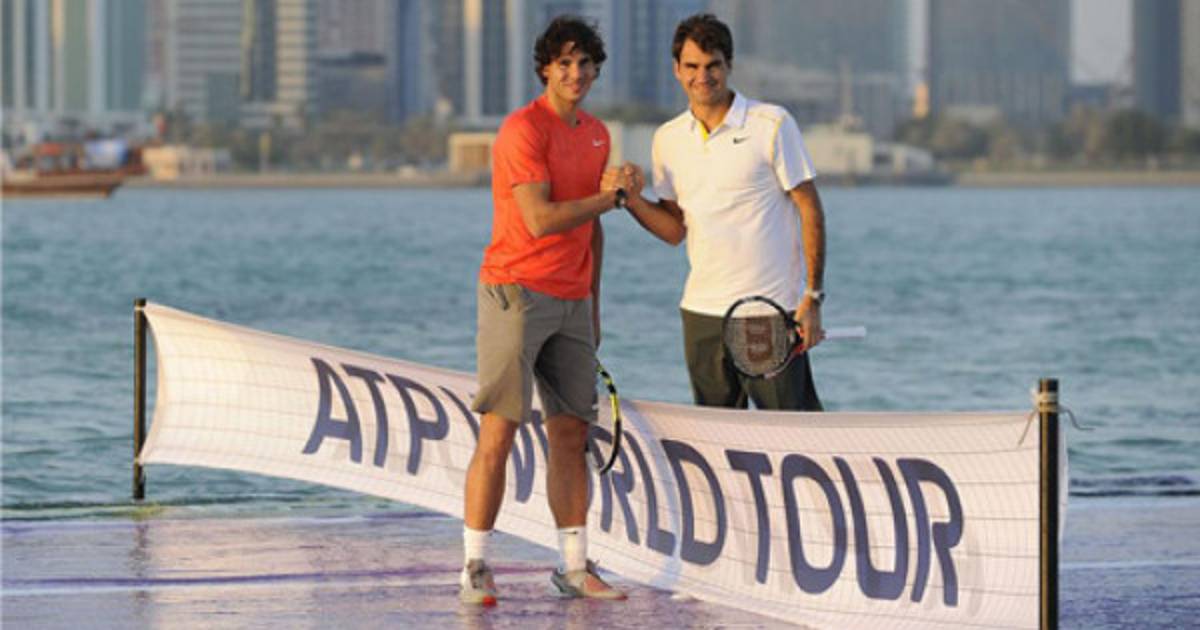 La superficie de la pista donde se enfrentaron Nadal y Federer era de agua y fue acondicionada en las azules aguas de la bahía de Doha, ciudad donde mañana se inicia el torneo ATP 250 y que abre el calendario oficial de tenis mundial.