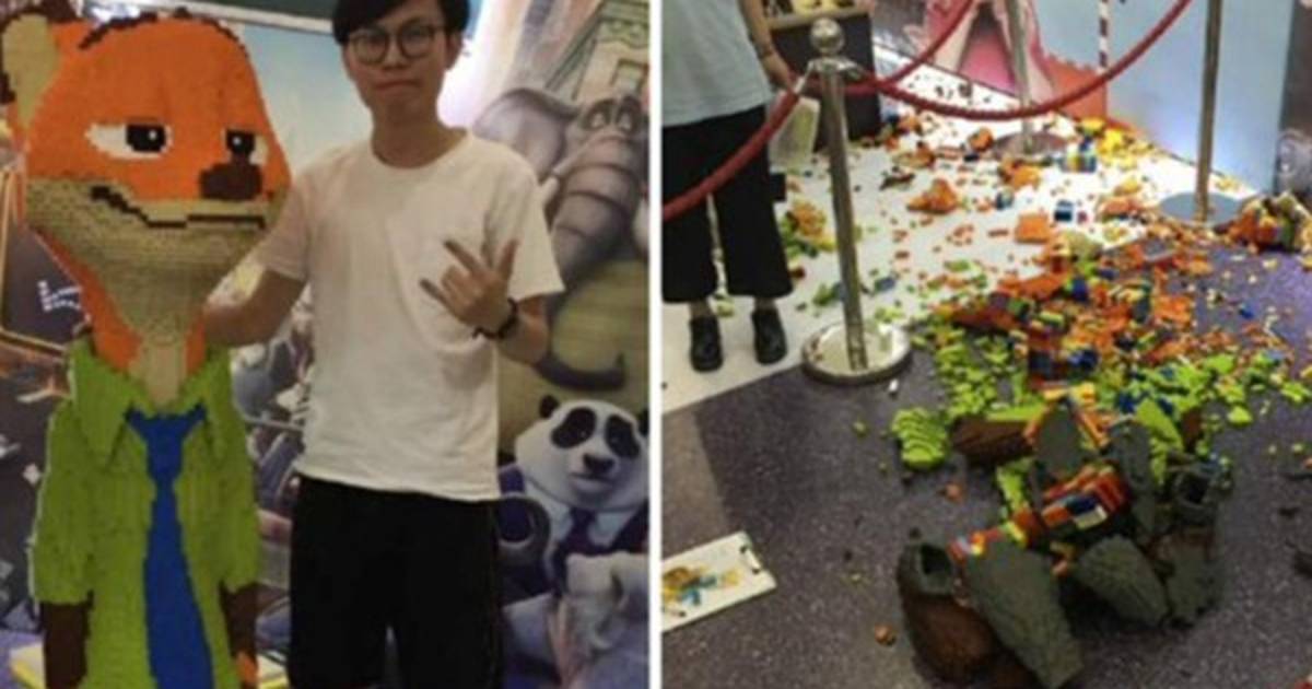 Sin embargo, tras abrir la exposición, un niño se metió bajo las cuerdas que protegían la obra para tomarse una foto, y acabó derribando la escultura formada de miles de piezas de plástico, informa Shanghaiist.