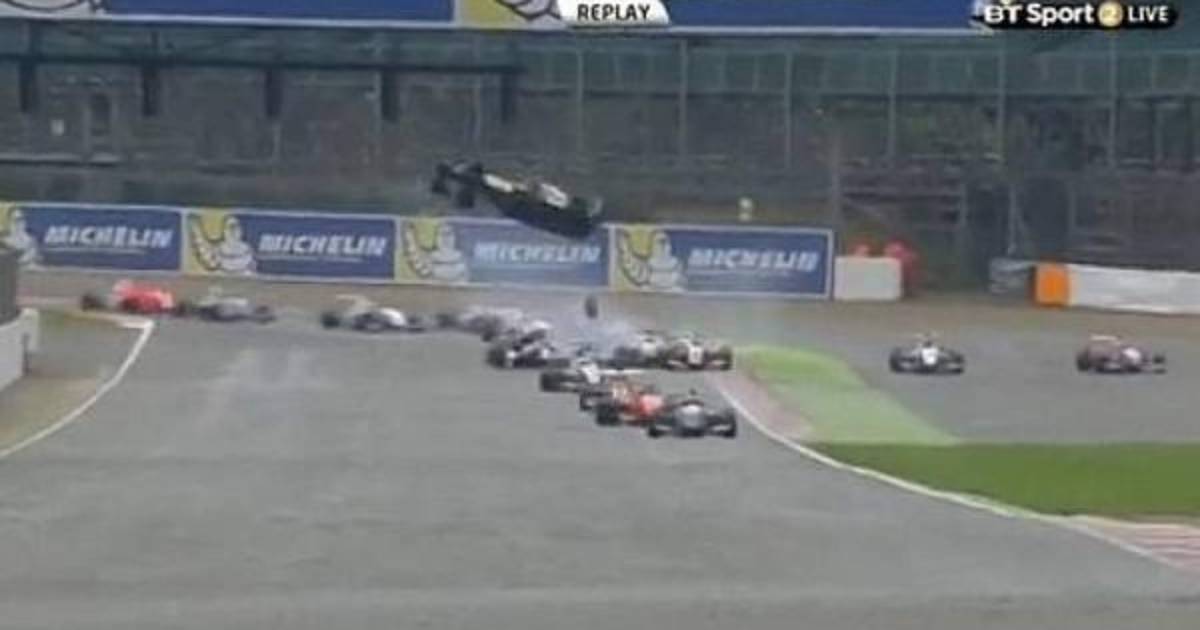 Fórmula Renault 2.0 que se ha celebrado en Silverstone. El joven piloto voló por los aires con su coche luego de impactar a toda velocidad contra las ruedas de otro vehículo antes de entrar a la recta del circuito británico.