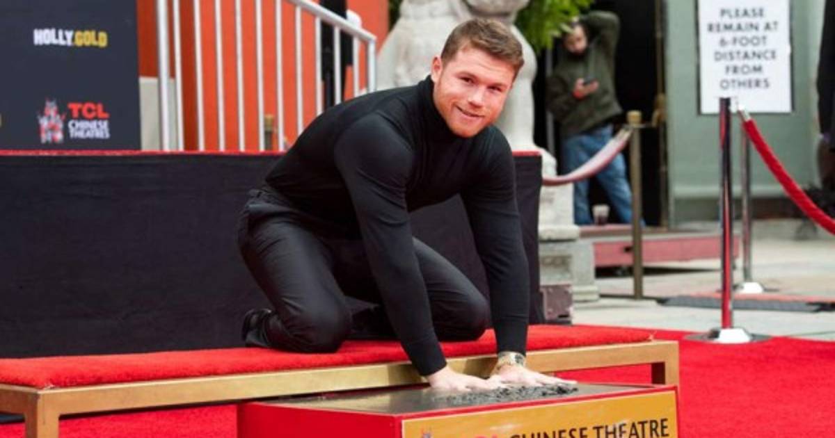 Tradicionalmente reservado para estrellas del cine y la música, 'Canelo' dejó sus huellas plasmadas en el reconocido trayecto en Los Ángeles, California.