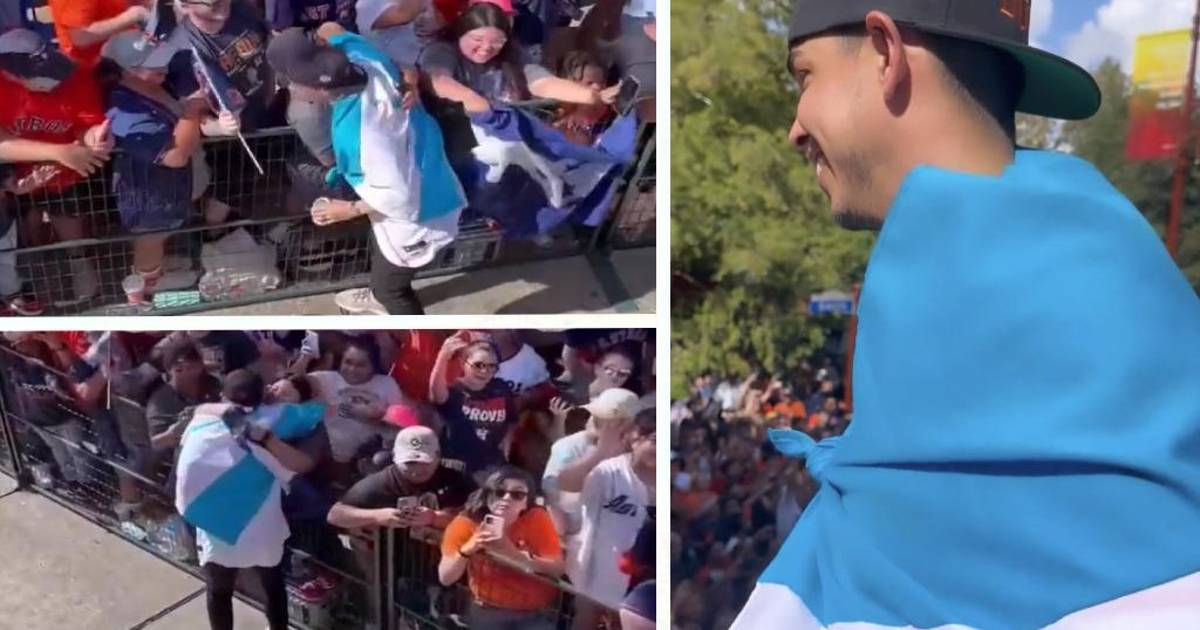 En cuestión de segundos, Mauricio Dubón bajó las escaleras del bus que transportaba a los campeones de la MLB, y se fue directamente a abrazar y saludar a sus compatriotas que festejaron con júbilo la acción del 14 de Astros.