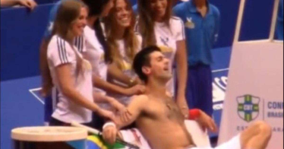Además de salir a la cancha con una peluca símil Guga, de jugar con una raqueta gigante, de bailar el famoso Ai si eu te pego y también sambar con una 'escola', Nole también aprovechó para hacerse unos masajes de 4 lindas chicas.