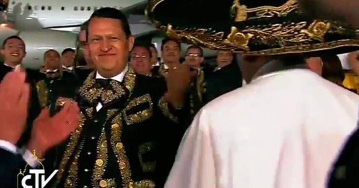 El pontífice argentino fue recibido en el aeropuerto de la capital mexicana por el presidente Enrique Peña Nieto y la primera dama Angélica Rivera, mientras un grupo de mariachis y bailarinas hacía una presentación tradicional y una multitud de fieles le gritaban 'esta es la juventud del papa'.