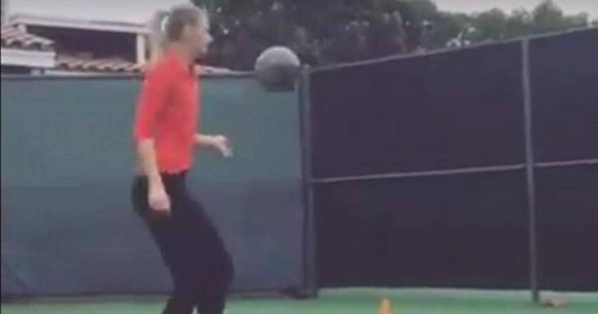 En un video subido por la tenista rusa se le puede ver dominando la pelota de fútbol en una cancha de tenis.