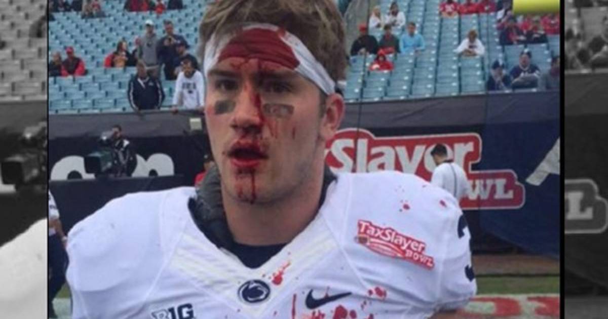 Kline fue golpeando con su cabeza el casco de sus compañeros y al parecer olvidó que él no lo llevaba puesto y terminó ensangrentado debido a lo fuerte que son estos cascos.