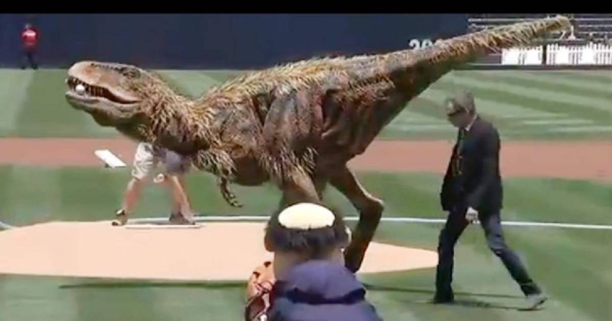 entre Royals y Padres en la MLB decidieron utilizar algo más llamativo como un dinosaurio.