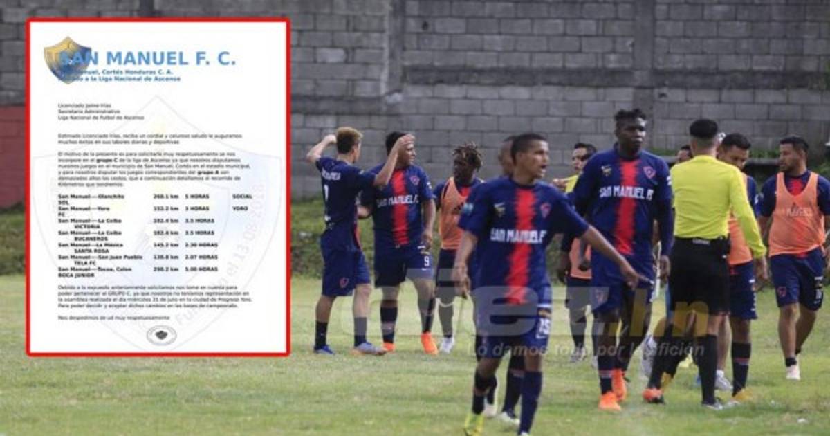 Pues en una solicitud al presidente de la Segunda División, Jaime Irías, el benjamín solicitó el cambio de encuadre A al C, argumentando que ellos juegan en el estadio Municipal de San Manuel, en el departamento de Cortés.